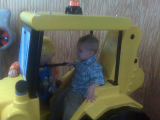 While we were waiting for our lunch, Jack was exploring and came running, yelling, "I found Bob the Builder! I found it!" He was SO excited about his discovery and he was so proud to go in the truck. He kept that serious expression throughout all the rides, though. On one ride, the cars had very loud and very annoying horns. The kids behind Jack and Ben pressed them incessantly so Jack kept turning around with a very stern, "Stop that. Stop that now!"